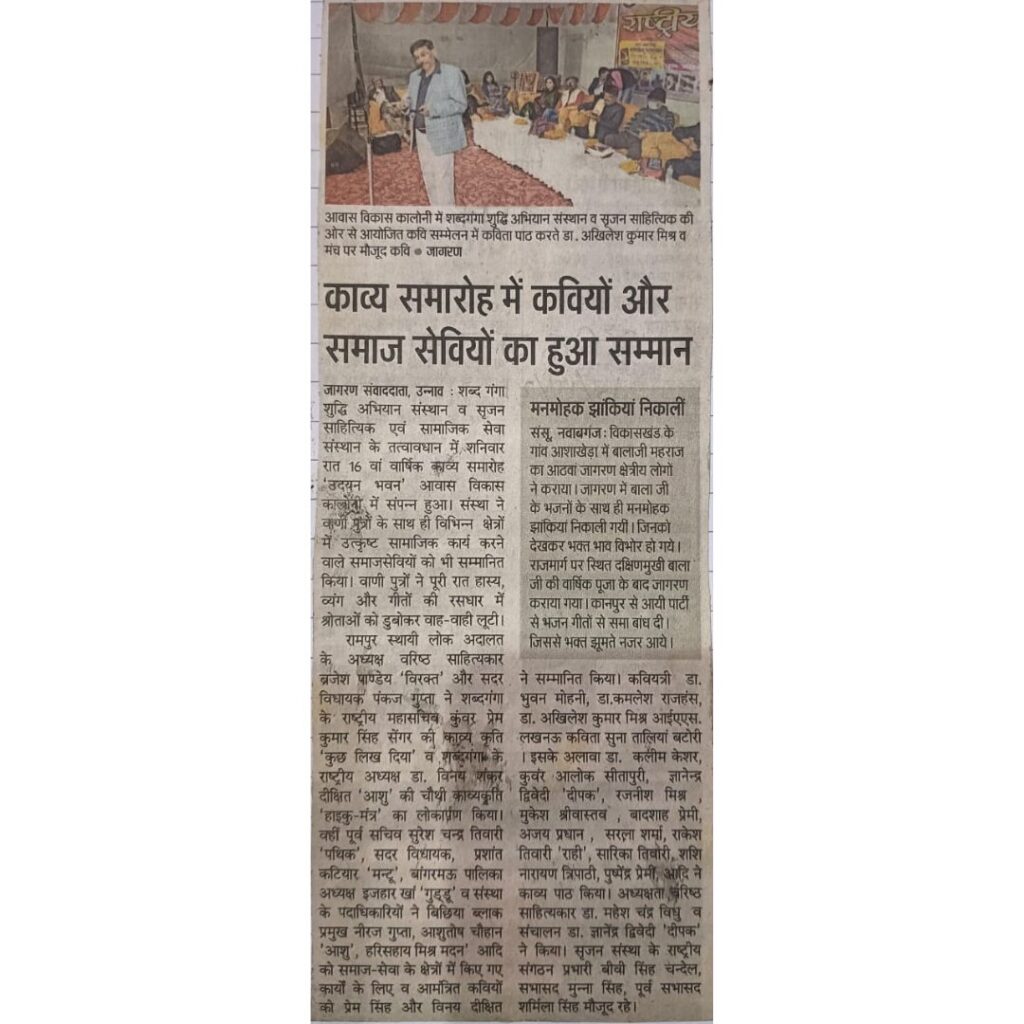 Previous Post मीडिया कवरेज | शब्दगंगा एवं सृजन कवि सम्मेलन और सम्मान समारोह | 2020 Next Post मीडिया कवरेज | शब्दगंगा एवं सृजन कवि सम्मेलन और सम्मान समारोह | 2022